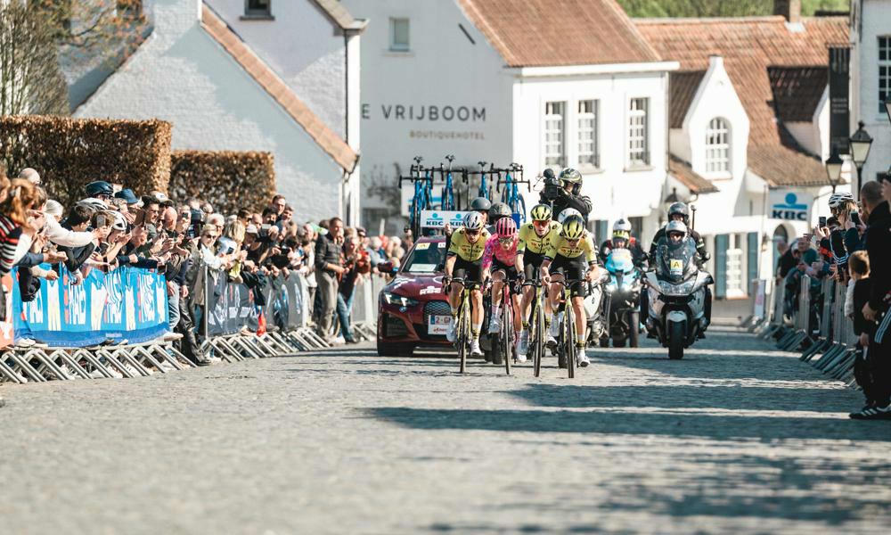 Le mercredi1 avril, les hommes s’élanceront de la Stationsplein de Roulers pour la 80e édition d'À Travers la Flandre. À 11h55, ils entameront un parcours d’environ 185 km en direction de Waregem. La première ascension proposée aux coureurs est cette année une nouveauté : la Hellestraat. La différence pourra à nouveau se faire dans les Ardennes flamandes, où ils franchiront à deux reprises le Berg Ten Houte, la Côte de Trieu, le Hotond ainsi que les pavés de la Mariaborrestraat. Autre nouveauté de cette édition, l’Onderbossenaarstraat, située à 77 km de l’arrivée, un flanc du Taaienberg doté d’une longue portion finale. Via l’Eikenberg, le Doorn et la Huisepontweg, le parcours mène ensuite à la double boucle comprenant le Nokereberg et la Herlegemstraat. Après 12 côtes et 7 secteurs pavés, nous connaîtrons le successeur de Neilson Powless sur la Verbindingsweg à Waregem. Téléchargez ci-dessous l’Official Fan Guide, comprenant le timetable et roadmap.