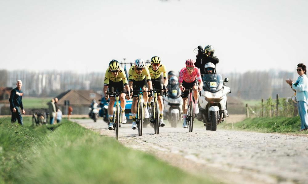 L'Américain Neilson Powless remporte sa première classique du printemps après un sprint palpitant contre Wout van Aert. Après avoir roulé en tête pendant 54 kilomètres avec trois coureurs de Team Visma | Lease a Bike, il est resté calme dans le final et a conclu victorieusement à Waregem. Il succède ainsi à Matteo Jorgenson en tant que vainqueur d’ À Travers la Flandre.